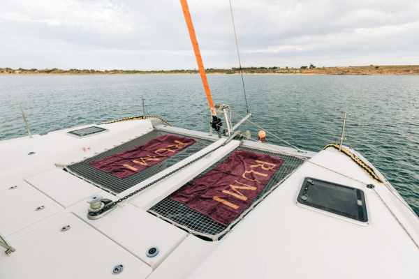 A relaxed shared catamaran experience offering gentle cruising, swim stops, and unhurried time on the water around Louth Island.