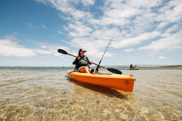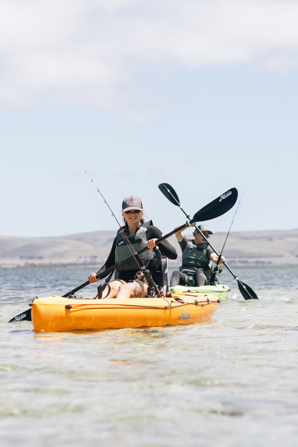 Your afternoon begins on the water in a Hobie fishing kayak, gently exploring the sheltered bays surrounding Louth Island in search of the prized King George Whiting. Premium fishing rods and high-grade tackle are provided, with bait prepared in advance, allowing you to arrive, unwind and simply enjoy the rhythm of fishing.